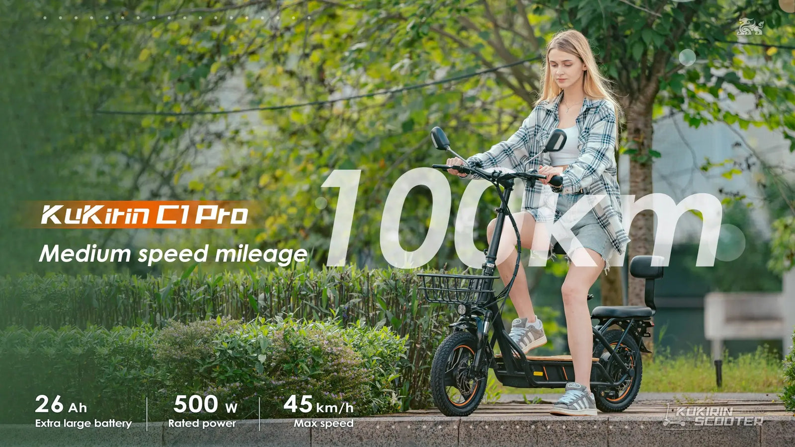 KuKirin C1 Pro équipé d'une batterie haute performance 48V/26Ah sans précédent, vous permet de profiter d'une autonomie sans souci allant jusqu'à 100 kilomètres sur une seule charge, ce qui est facile à gérer pour les déplacements quotidiens et les excursions de week-end, et vous donne confiance et plaisir à chaque voyage.