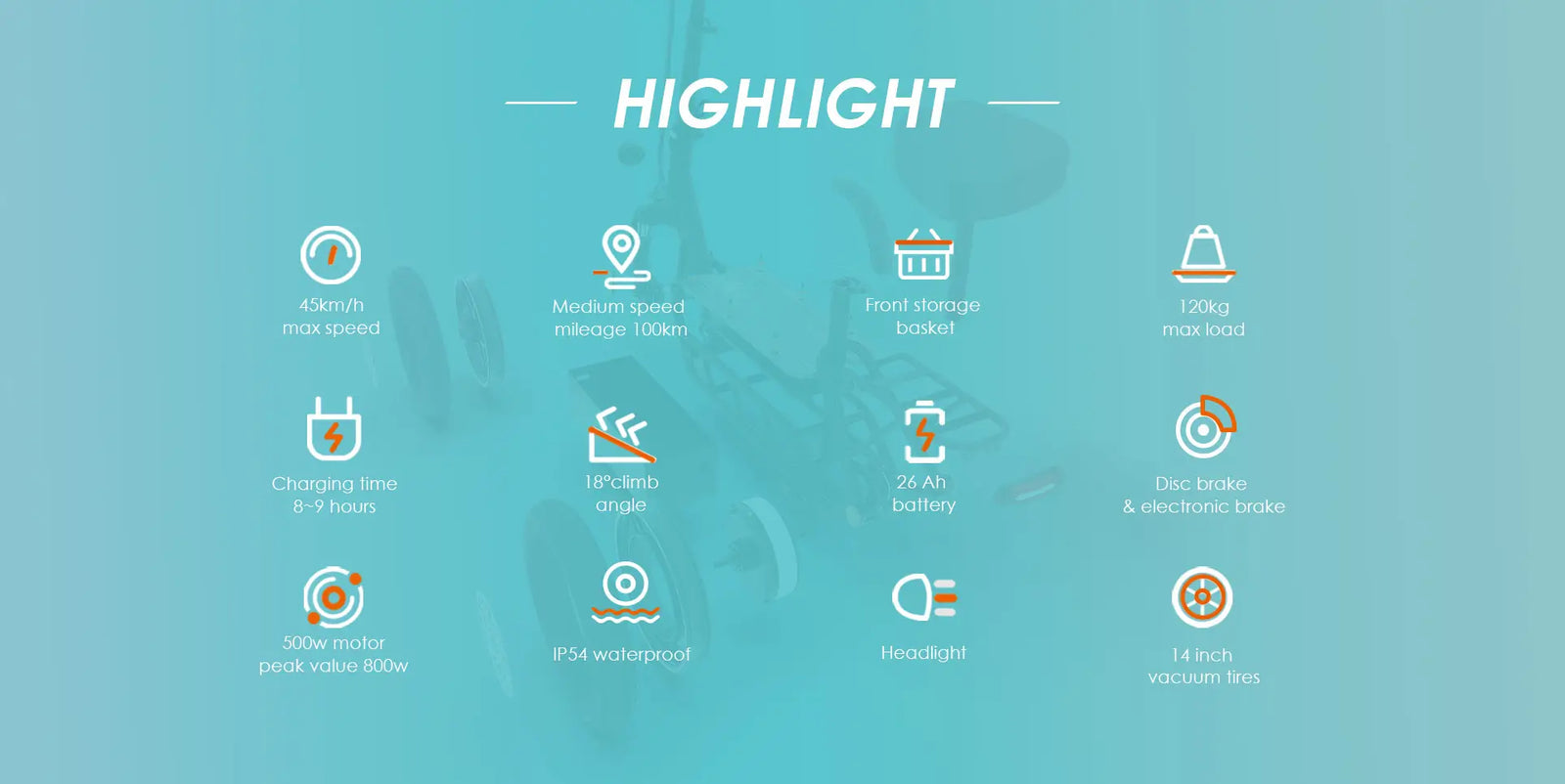Pneu14 poucesLumièresLED intégréeFreinsFrein à disque avant et arrière et frein électriqueAmortisseurAmortisseur à ressort de fourche avant
