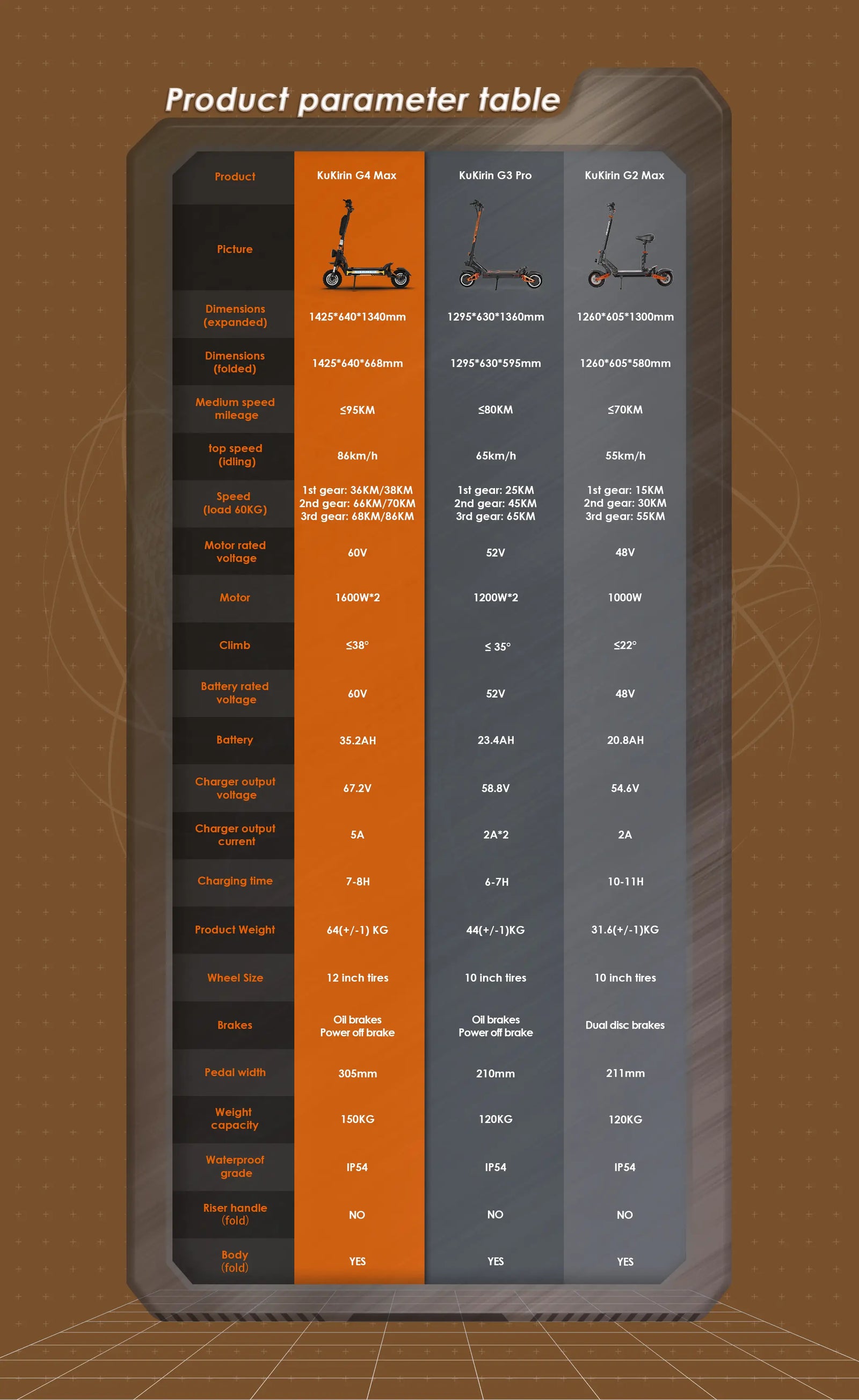 Le goujon Kukirin G4 Max adopte une conception de forme creuse, qui conserve la division de section d'origine, un corps compact et simple, montrant la vitesse et la force. Il recherche une apparence élevée tout en obtenant de meilleurs résultats de brise-vent, poussant la vitesse et l'esthétique de puissance des scooters électriques haute puissance à un nouveau niveau.